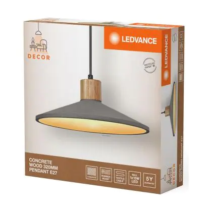 Ledvance Decor Concrete/Steel/Wood Pendant 320 Dark Grey | Suitable for E27