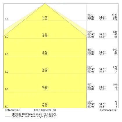 The colour code is a combination of colour rendering (CRI) and light colour (Kelvin). The first number indicates the colour rendering (1 = very poor colour rendering, 9 = maximum colour fastness). The second and third number contains the light colour. Example: the colour code 830 consists of good colour rendering (8) and warm white light (3000K). |