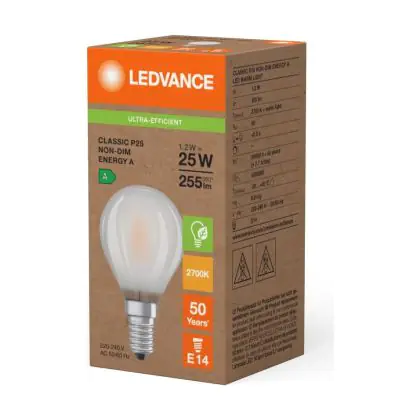 Ledvance LED Classic E14 Pear Filament Frosted 1.2W 255lm - 827 Extra Warm White | Replaces 25W