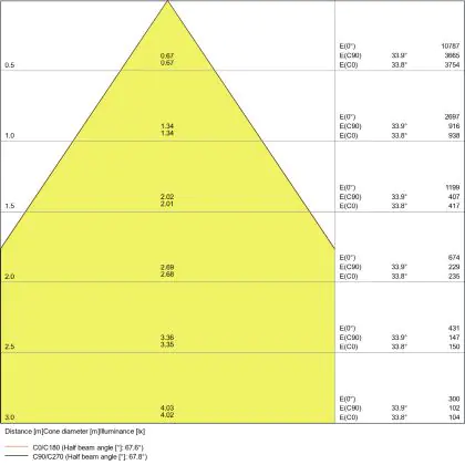 The colour code is a combination of colour rendering (CRI) and light colour (Kelvin). The first number indicates the colour rendering (1 = very poor colour rendering, 9 = maximum colour fastness). The second and third number contains the light colour. Example: the colour code 830 consists of good colour rendering (8) and warm white light (3000K). |