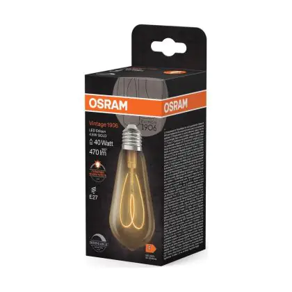 Osram Vintage 1906 LED E27 Edison Filament Gold 4.9W 470lm - 922 Extra Warm White | Best Colour Rendering - Dimmable - Replaces 40W