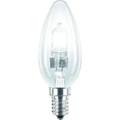 Philips EcoClassic Candle B35 are candles shaped halogen lamps replacing perfectly your old incandescent lamps. These lamps allow you to maintain a high quality light while saving energy (compared to your old incandescent lamps). All lamps in this range have a E14 base and a B35 shape.
